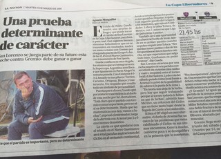 O duelo do Grêmio com o San Lorenzo, nesta terça-feira, a partir das 21h45, movimenta a torcida dos argentinos pela Libertadores. Apesar maior espaço dado ao jogo do Boca Juniors, que ocupou a maioria das capas dos jornais argentinos, a partida de logo mais recebe tratamento de decisão para o Ciclón. A intenção dos gringos é repetir a o que foi feito no Brasil, quando o clube de Pablo Guede teve bom desempenho e empatou em 1 a 1 na Arena.